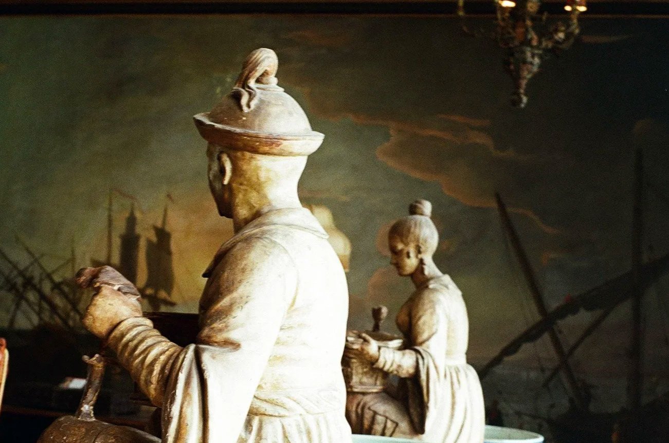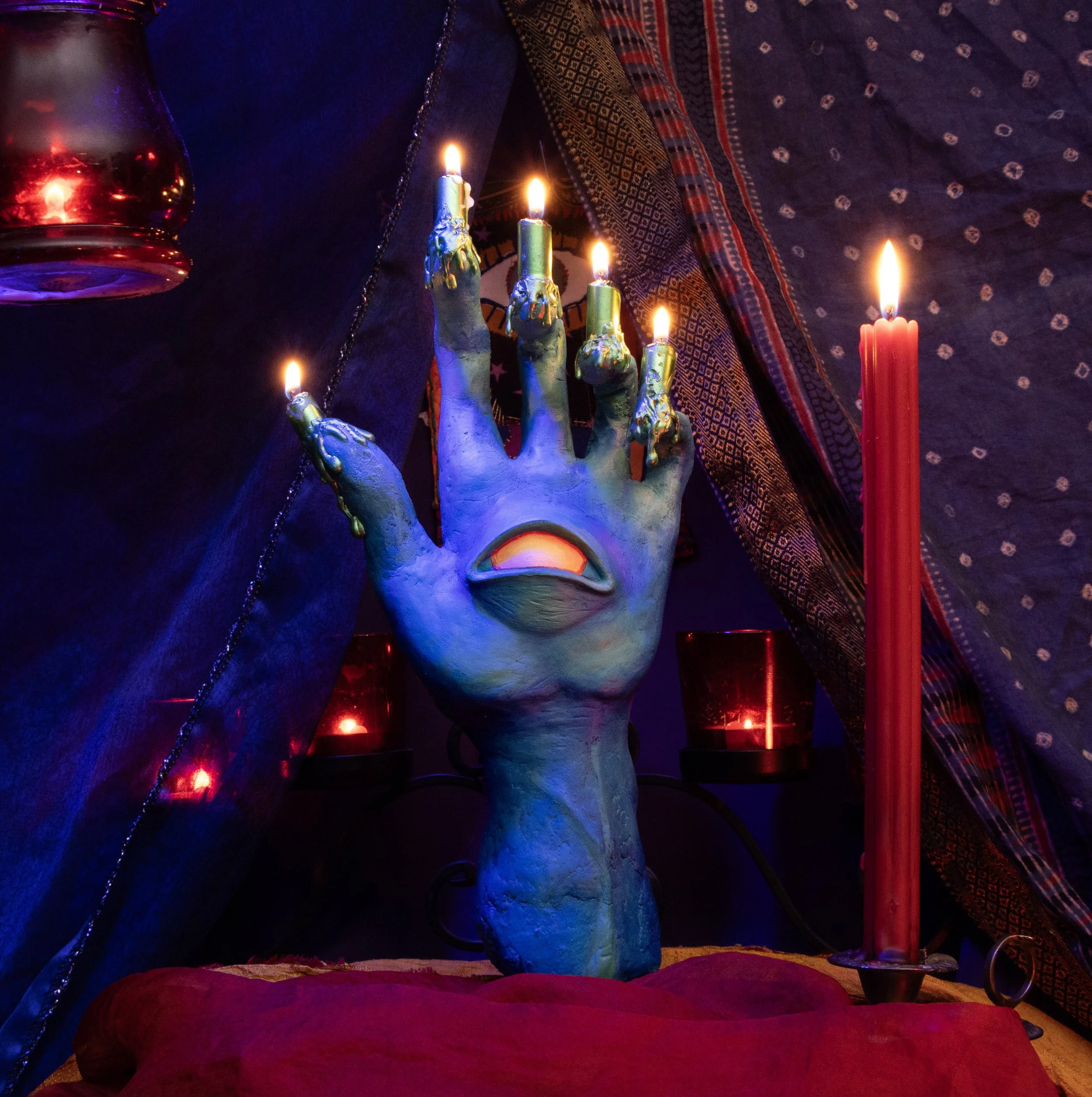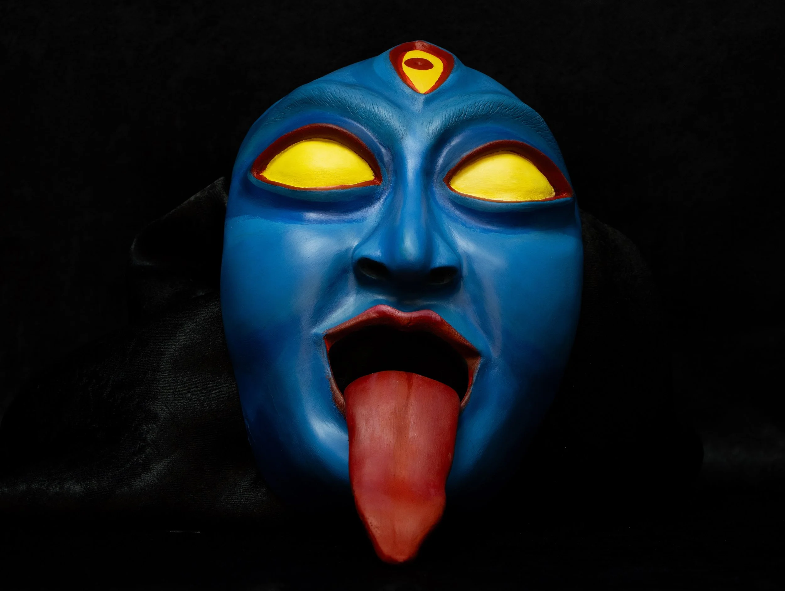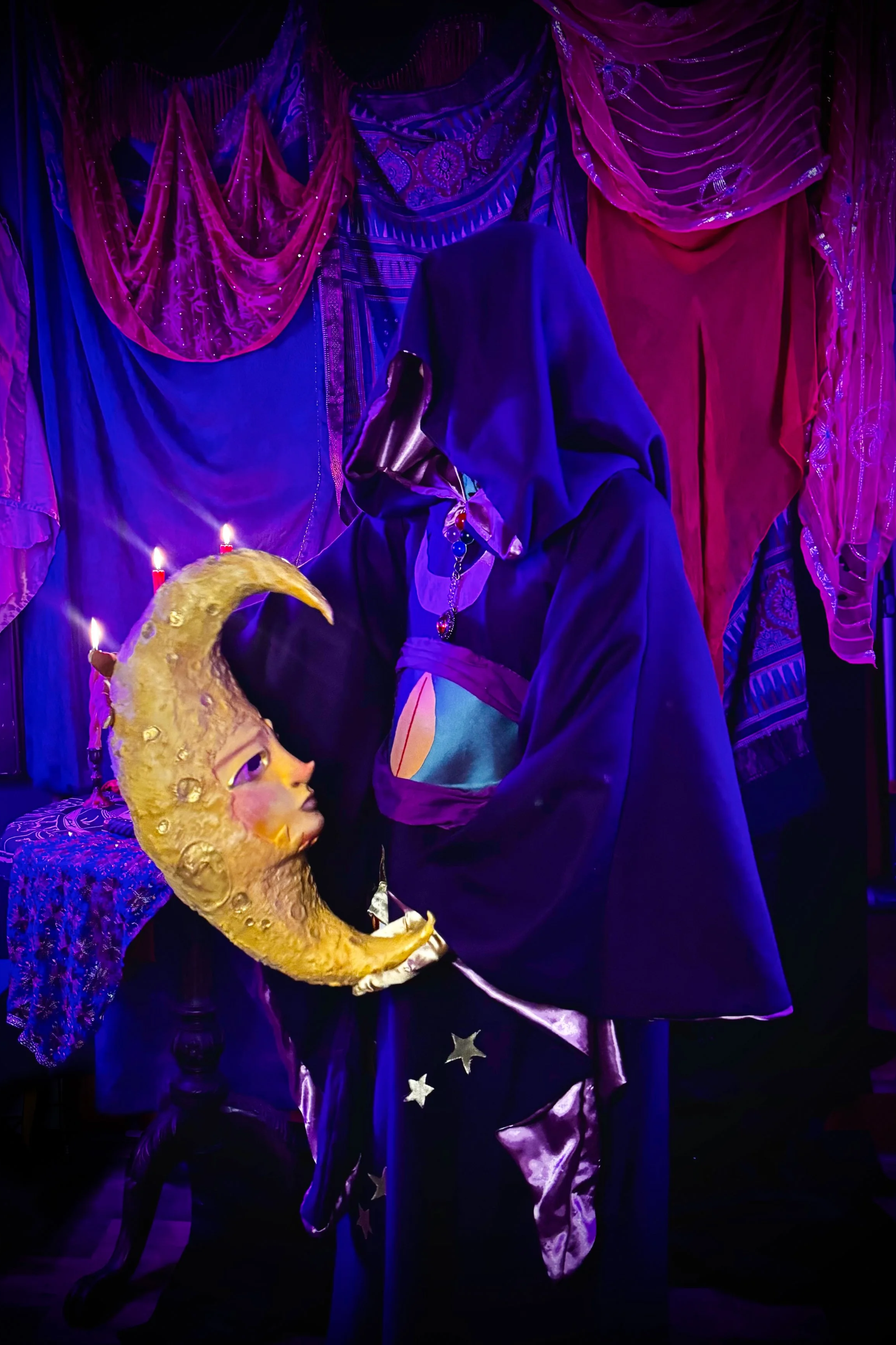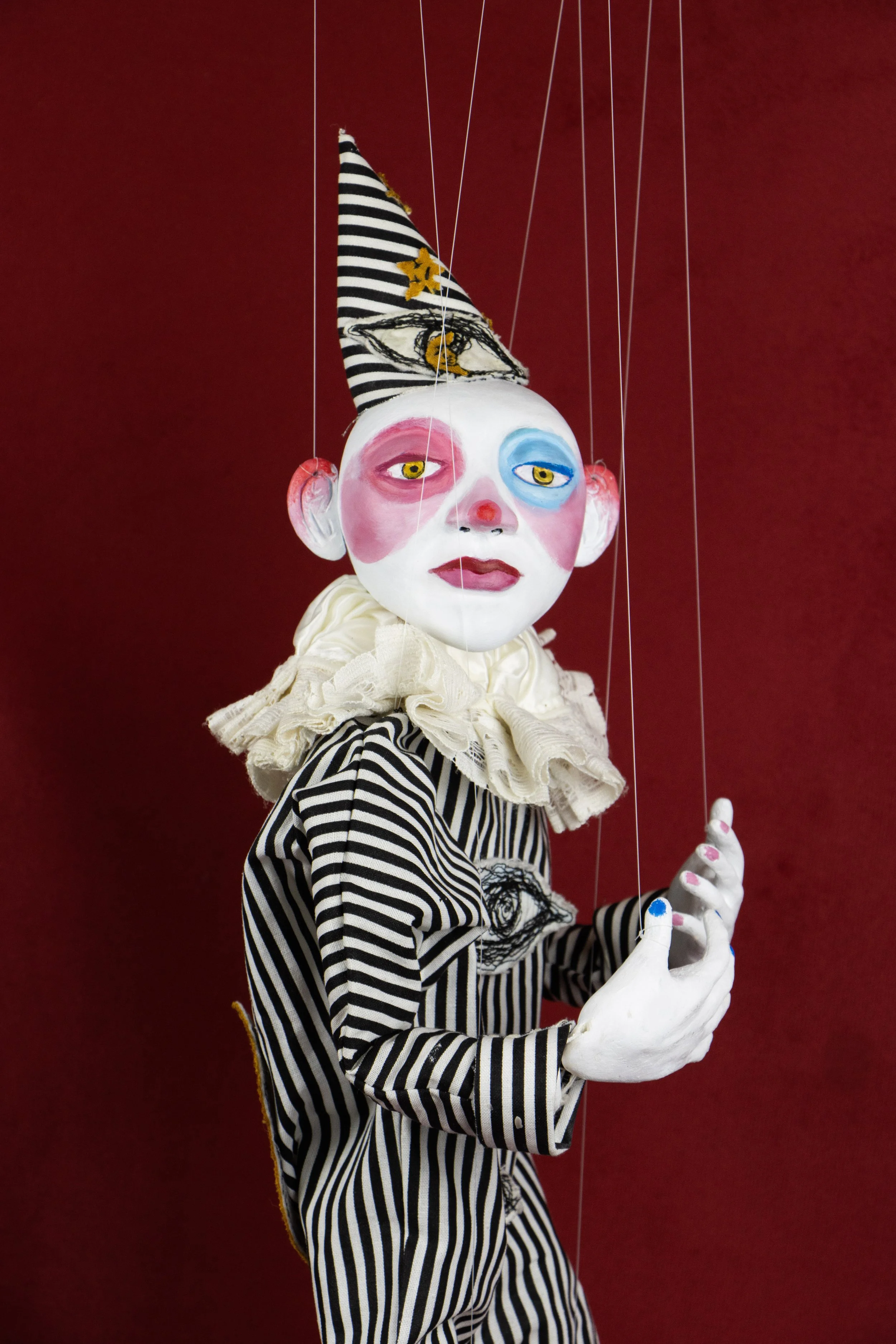 paper mache, paper clay, various textile scraps, hand and machine embroidery, acrylic paint.